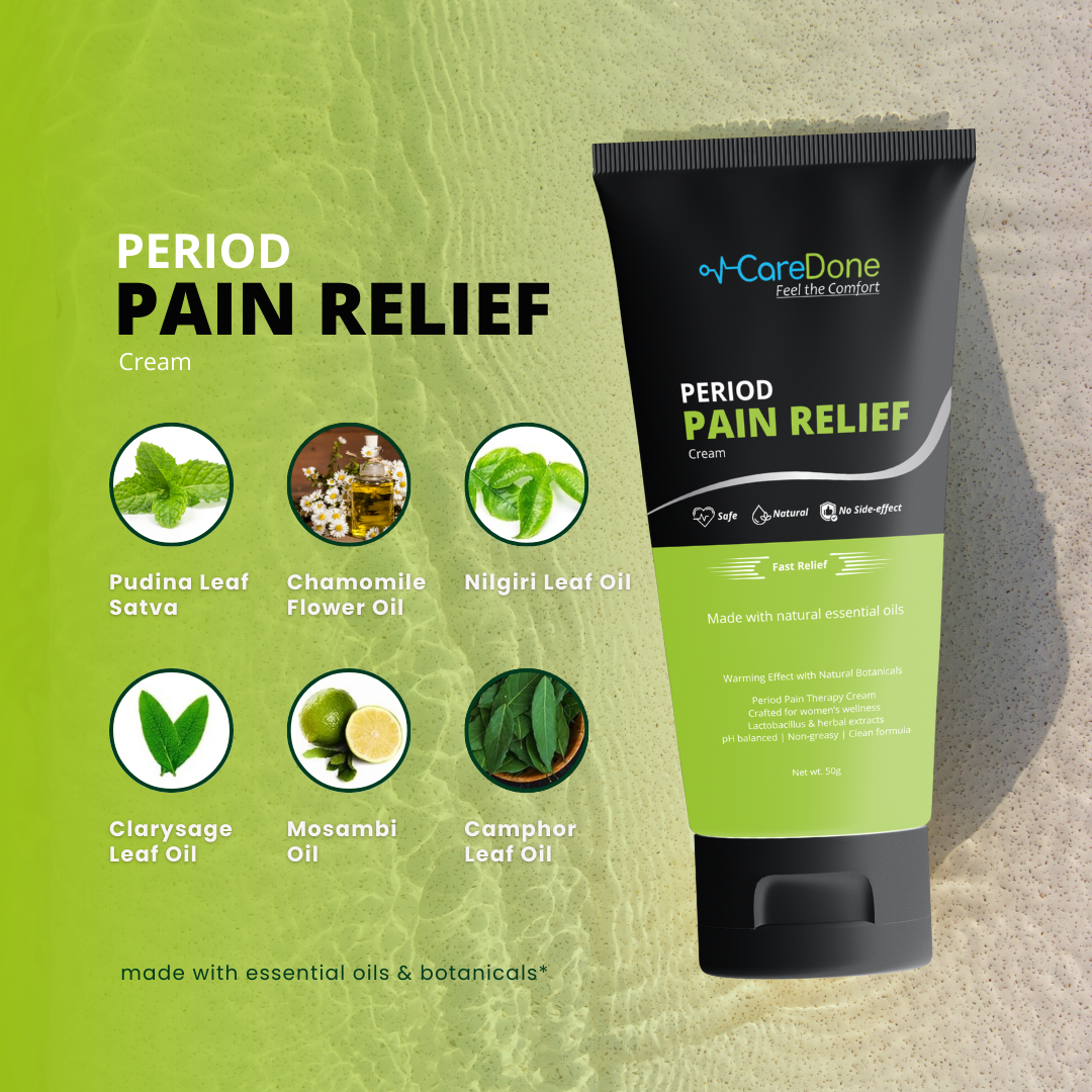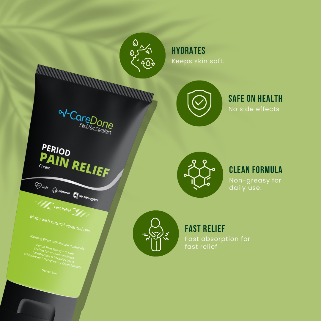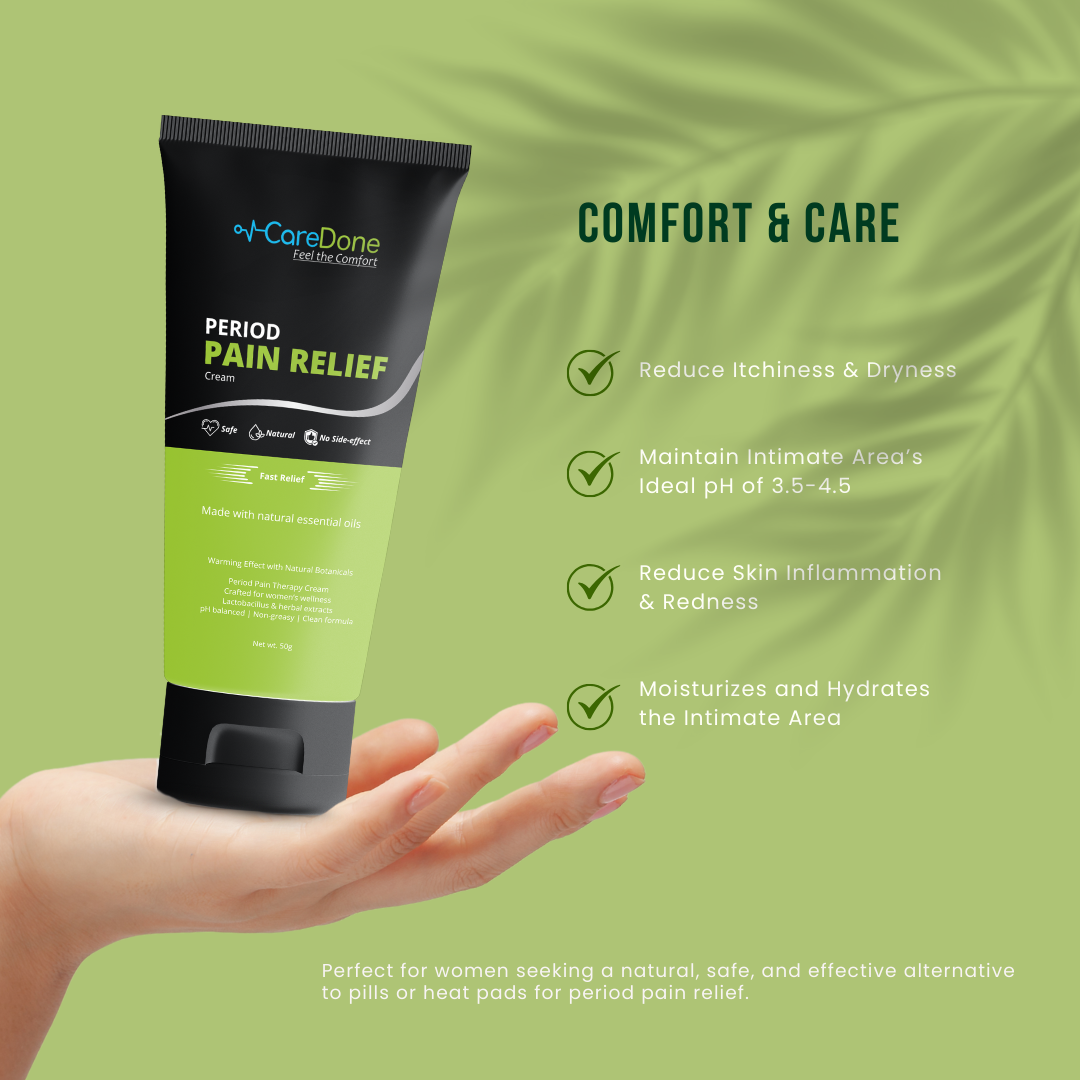 - Generic Name : CareDone Fast Period Pain Relief Cream, Period Cramps, Natural, Skin Friendly, 50 gram